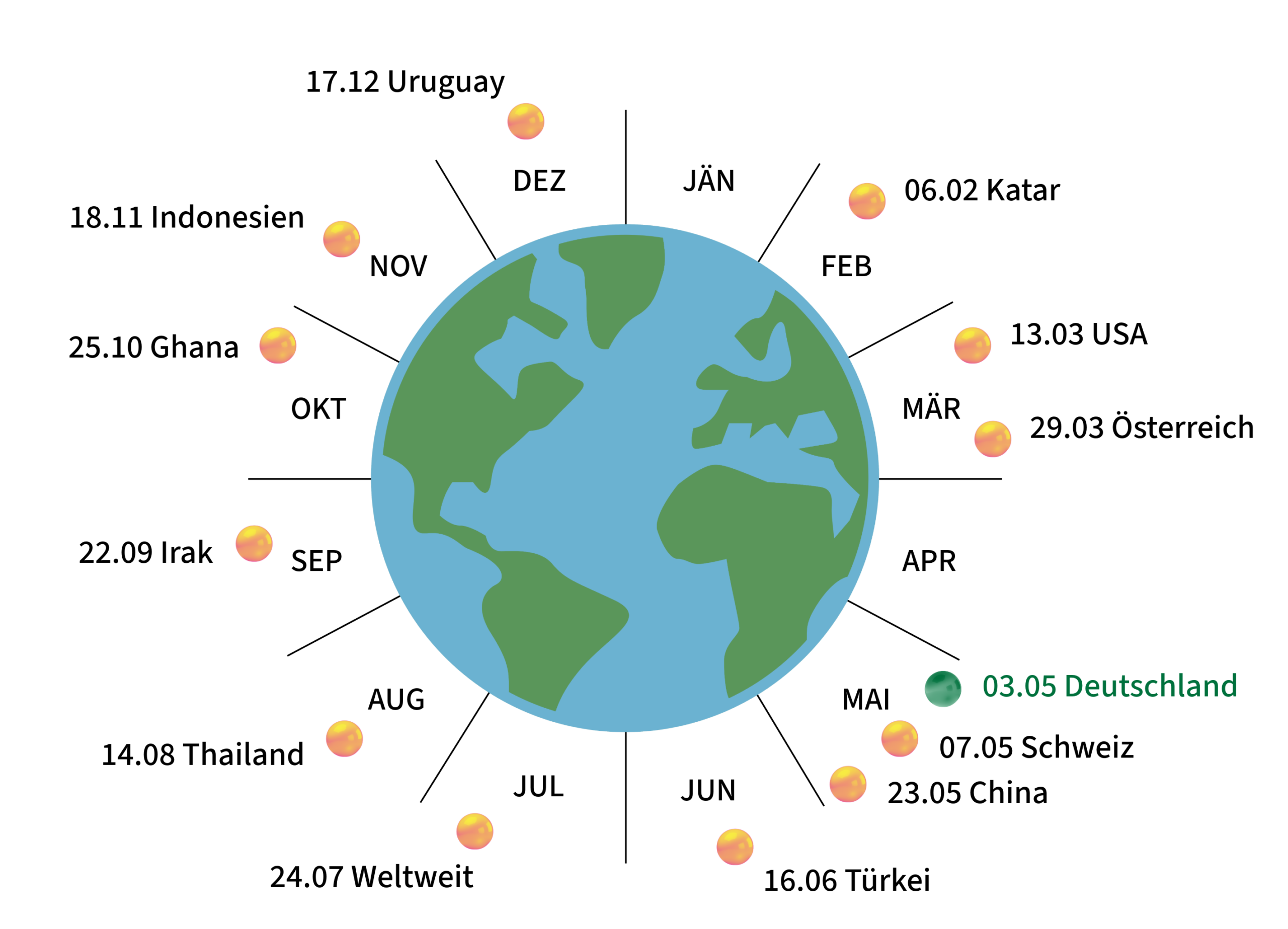 Die Biokapazität der Erde wird berechnet, also die Fähigkeit der Erde innerhalb eines Jahres Dinge zu produzieren, die wir zum Überleben brauchen wie Sauerstoff, Nahrungsmittel, Trinkwasser etc. Dem gegenübergestellt wird unser tatsächlicher Konsum an Nahrung, Baumaterial, Wassernutzung, Kleidung, Treibhausgasemissionen usw. In Deutschland haben wir 2025 bereits am 03. Mai die Ressourcen eines ganzen Jahres verbraucht und greifen nun die Ressourcen unserer Nachkommen an. Das Datum wird jährlich neu berechnet und rückt immer weiter vor.